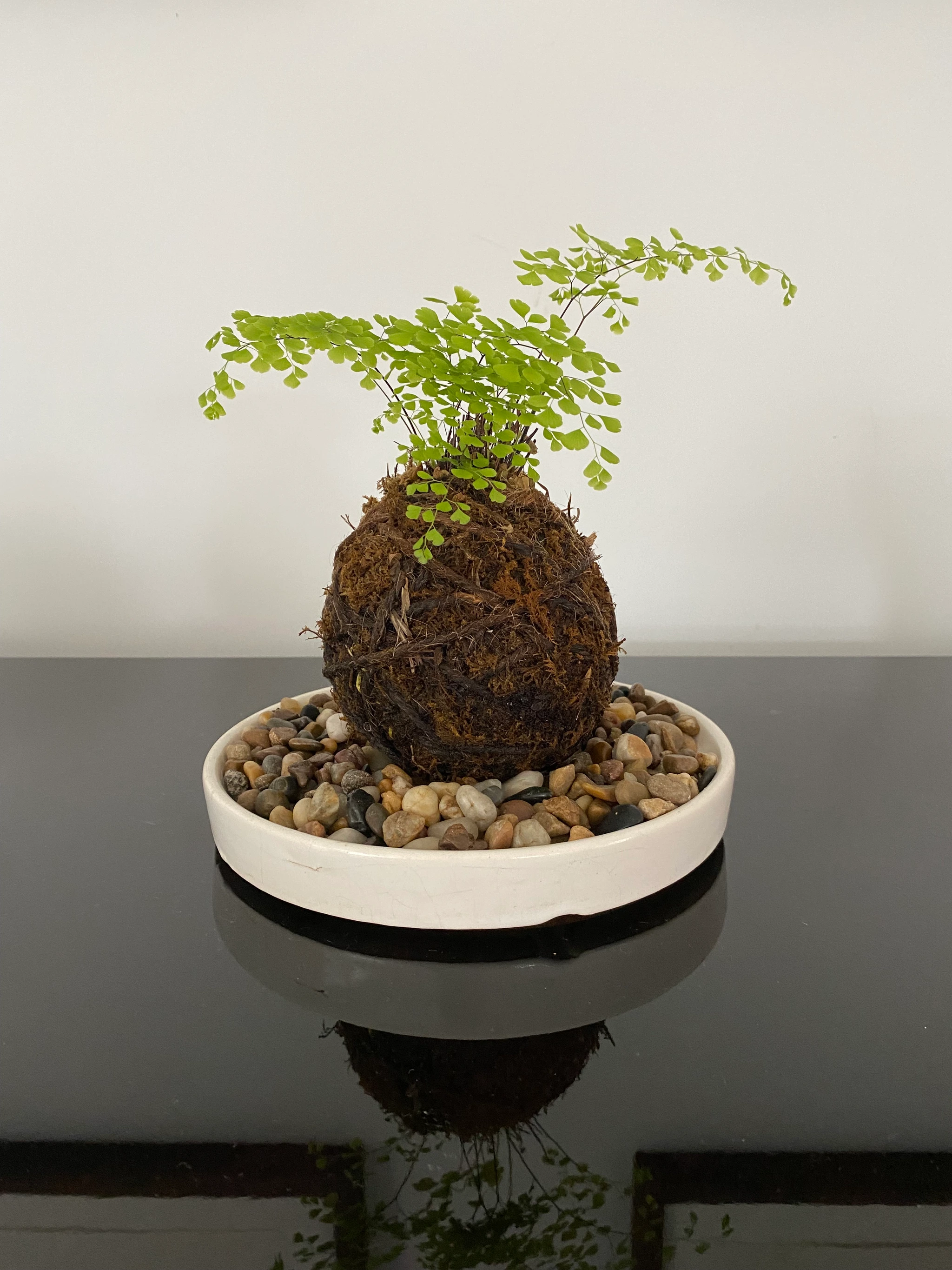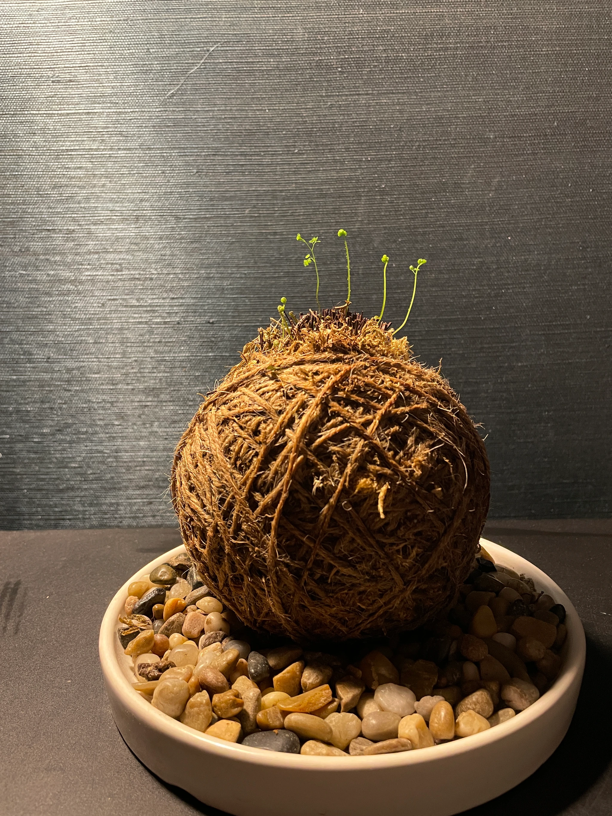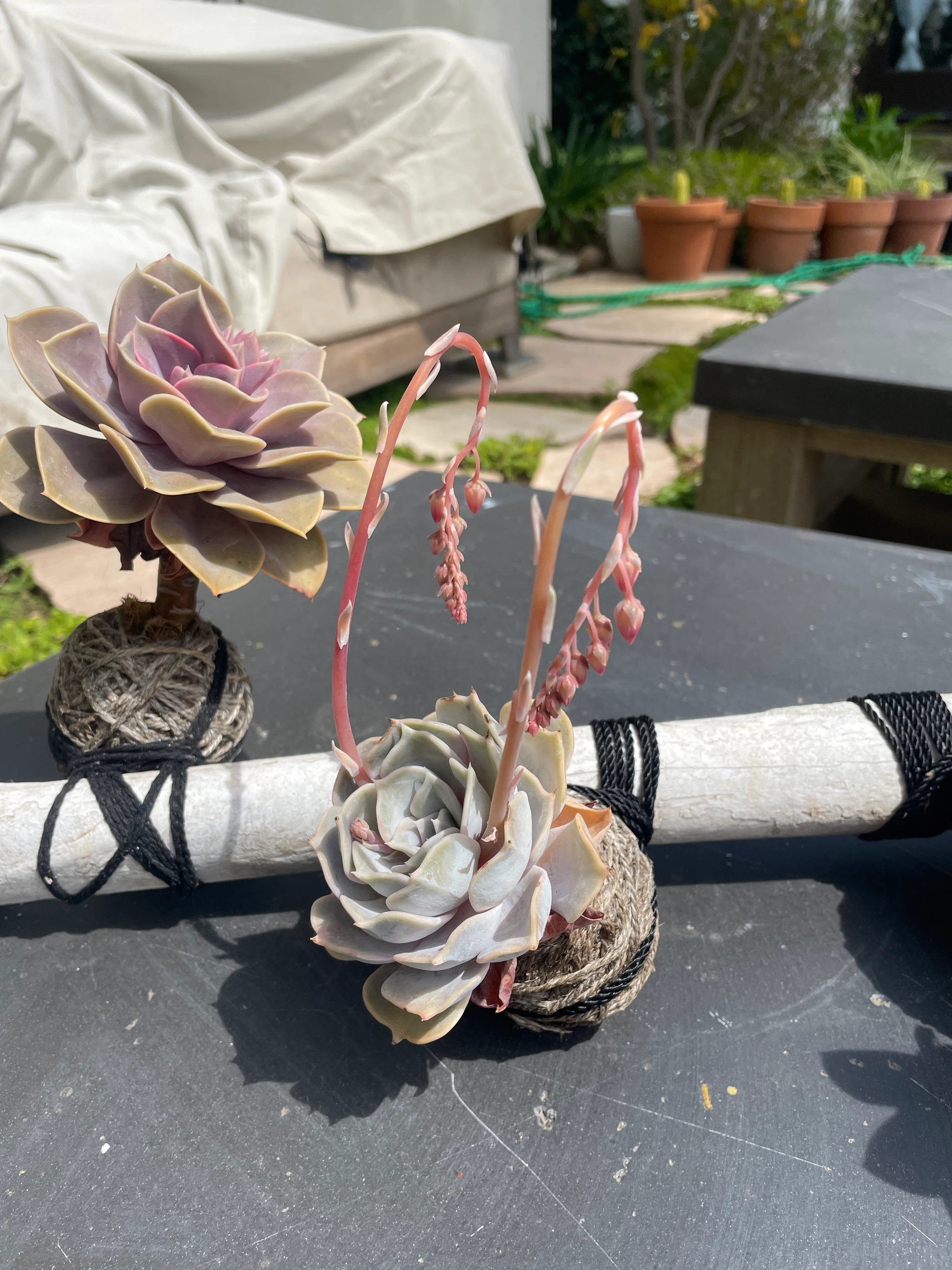 Succulent kokedama mounted to cow bone. Cow bone found slightly buried on a hillside in Three Rivers