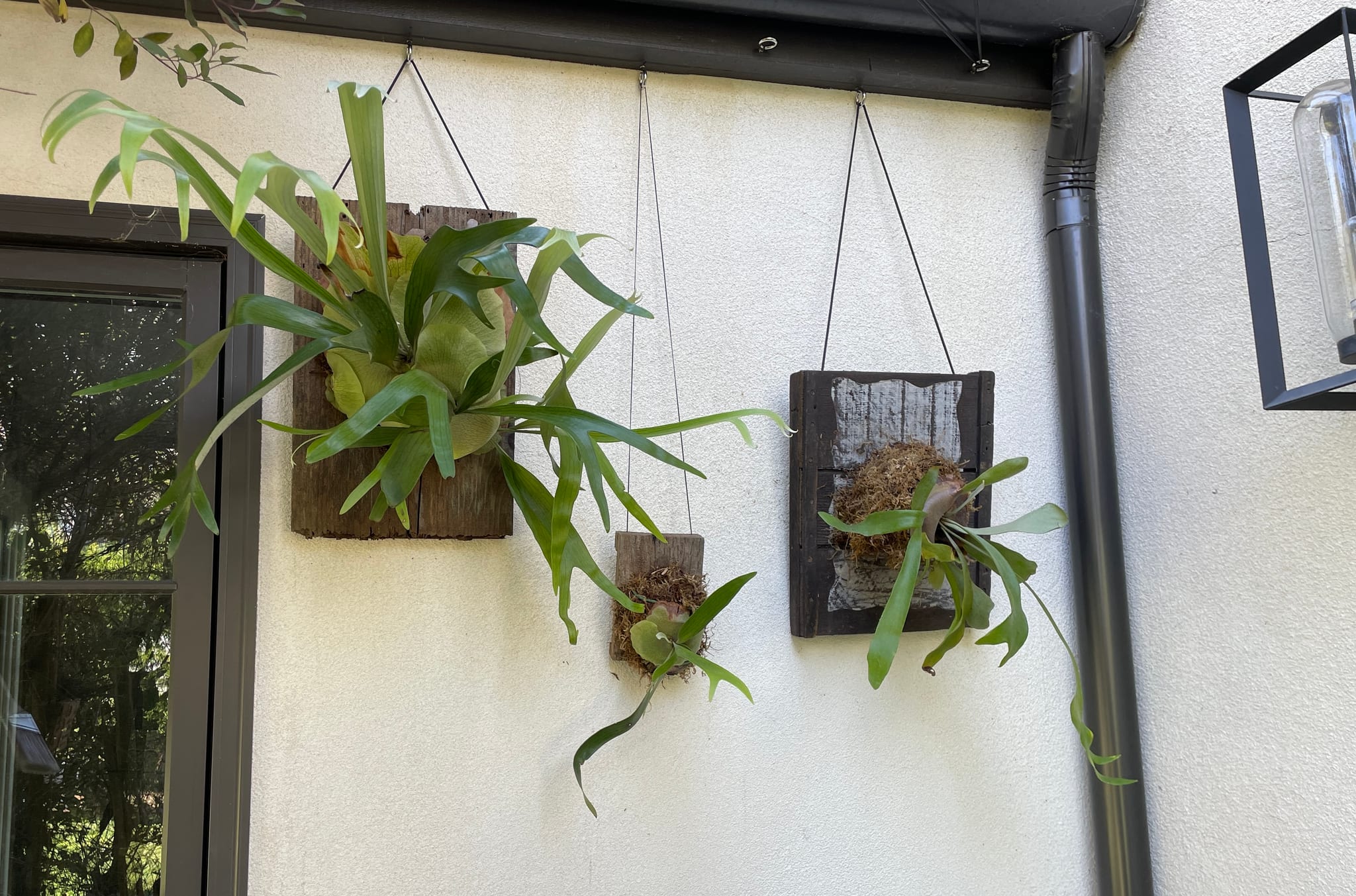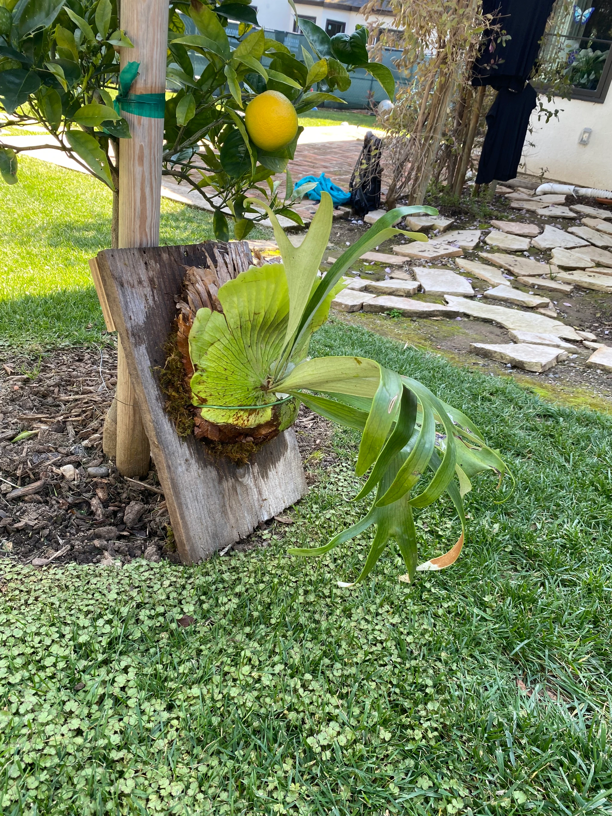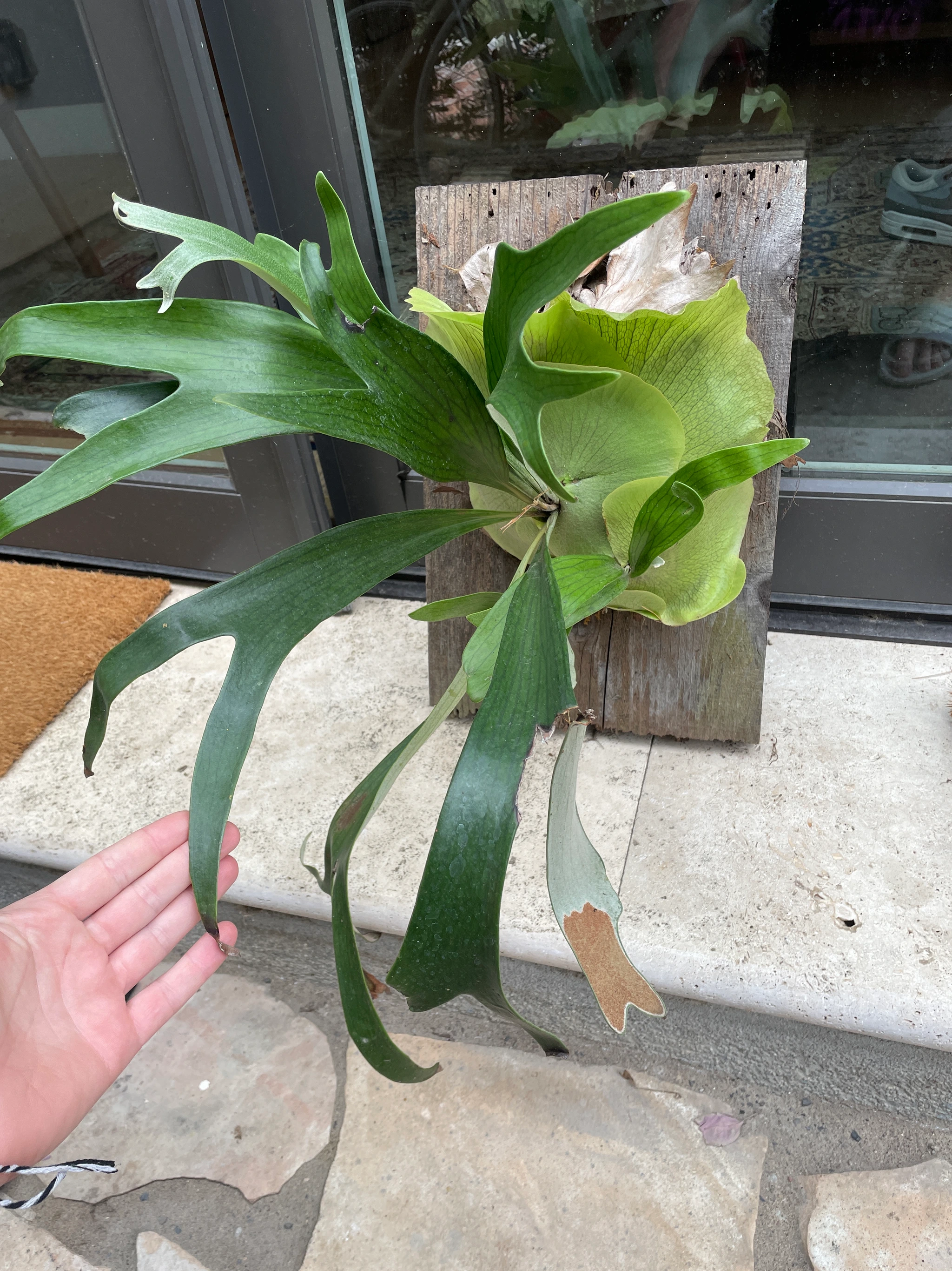 Recently liberated staghorn (from neighborhood staghorn mom) mounted on wood
